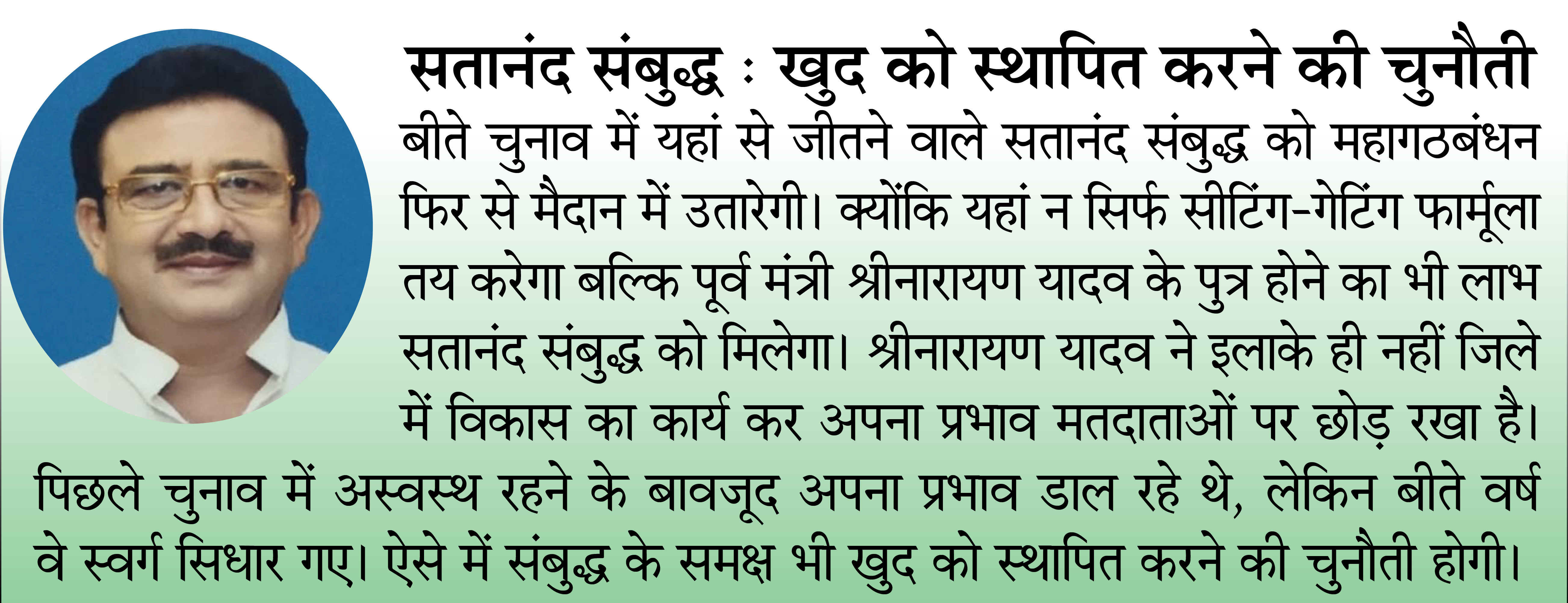 जदयू ने MY समीकरण में सेंधमारी की रणनीति के तहत 2005 जमशेद असरफ व 2010 में प्रवीण अमानुल्लाह को मैदान में उतारा था और दोनों ही बार चुनाव जीत गई। दोनों ने कद्दावर नेता व पूर्व मंत्री श्रीनारायण यादव को हराया था। अभी श्रीनारायण यादव के पुत्र सतानंद संबुद्ध (राजद)यहां से विधायक हैं। राजद के कद्दावर नेता को हराकर जीतने वाले दोनों नेताओं को मंत्री भी बनाया गया था। इससे पूर्व कांग्रेस के समसू जोहा ने भी 1985 में (तब बलिया विधानसभा) श्रीनारायण यादव को हराया था।