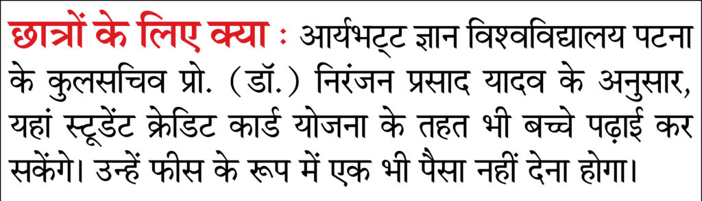 बेगूसराय | राेजगारपरक शिक्षा समय की जरूरत है। बच्चों का रुझान भी इस ओर बढ़ रहा है। सरकार भी ऐसे कोर्स पर फोकस कर रही है जिसकी पढ़ाई के बाद वे आिर्थक रूप से आत्मनिर्भर हो सकें। ये बातें आर्यभट्‌ट ज्ञान विश्वविद्यालय पटना के कुलसचिव प्रो. (डॉ.) निरंजन प्रसाद यादव ने आदर्श नगर लगौली, नींगा रोड, मौके पर कही। उन्होंने बताया कि यह इंस्टीट्यूट आर्यभट्‌ट ज्ञान विश्वविद्यालय पटना से संबद्ध है और AICTE से मान्यता प्राप्त है।
