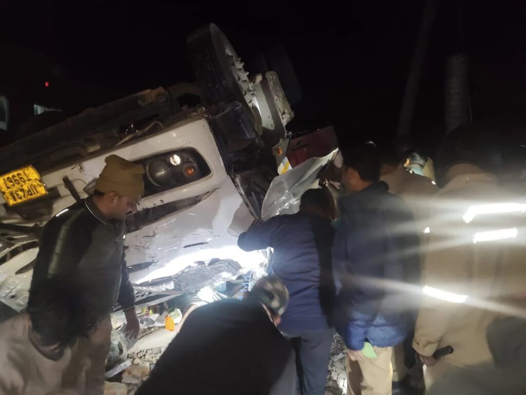 बताया गया कि ट्रक में प्लाई की चादरें लदी थीं। अचानक नियंत्रण खोने से कंटेनर सीधे ट्रैक पर नीचे गिर गया, जिससे मौके पर अफरा-तफरी मच गई। हादसे की सूचना मिलते ही पुलिस फोर्स मौके पर पहुंची और राहत-बचाव कार्य शुरू किया।
