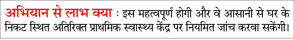 • गर्भवती महिलाओं की तुरंत पहचान और चार से अधिक जांचों पर विशेष जोर।