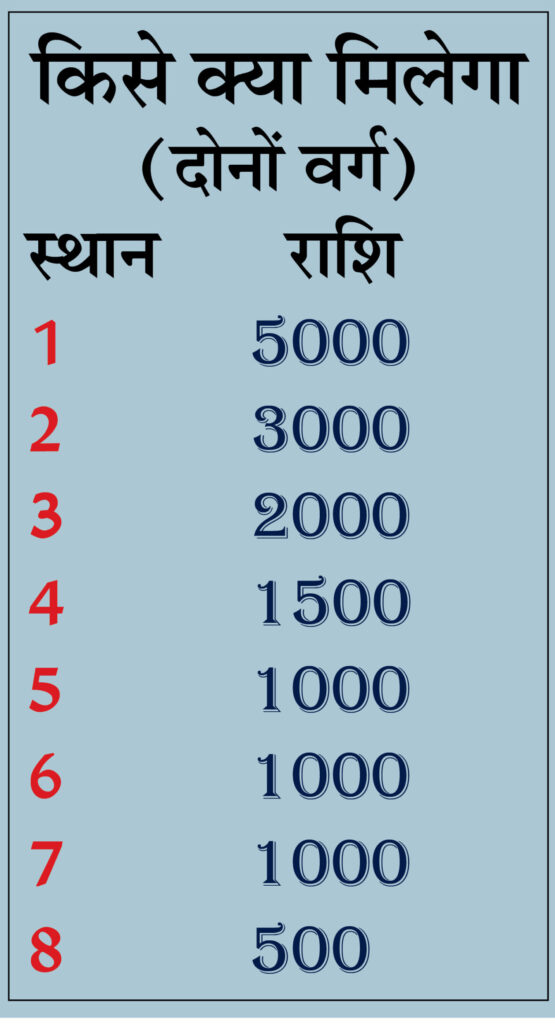 • प्रतियोगिता में टॉप 8 खिलाड़ियों को नकद इनाम भी दिया गया