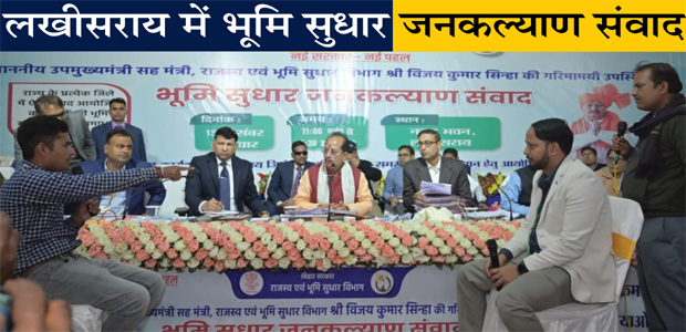 जनकल्याण संवाद के दौरान मंत्री विजय सिन्हा ने कहा कि लखीसराय को राजस्व का मॉडल जिला बनाया जाएगा। अपराधी–भू-माफिया और राजस्व कर्मियों के गठजोड़ को तोड़ना प्राथमिकता है। फर्जी और गलत कागजात के जरिए व्यवस्था में बाधा डालने वालों पर कड़ी कानूनी कार्रवाई होगी। विभागीय संलिप्तता पाए जाने पर तत्काल बर्खास्तगी और संपत्ति की जांच कराई जाएगी।