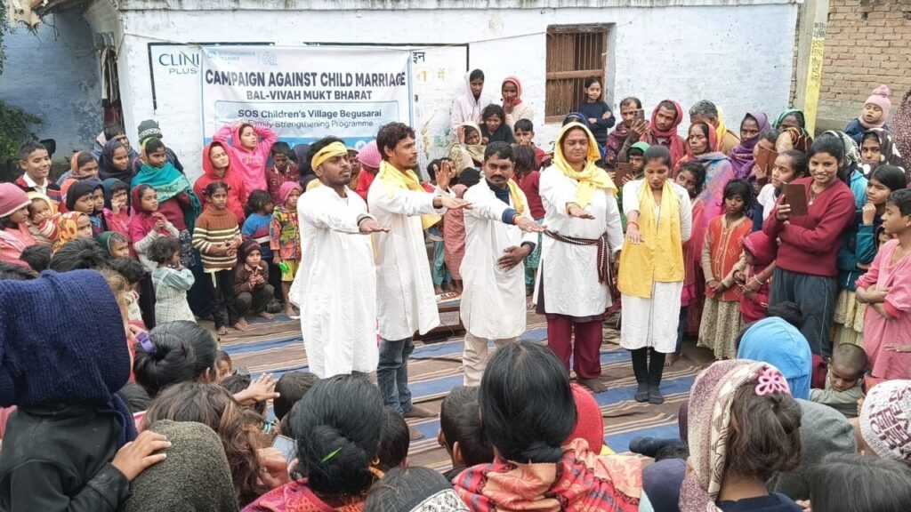 बेगूसराय | एसओएस चिल्ड्रन विलेज ऑफ इंडिया, सिंघौल बेगूसराय परिवार की ओर से सशक्तीकरण कार्यक्रम में विभिन्न गांव में बाल विवाह मुक्त भारत अभियान के तहत नुक्कड़ नाटक के माध्यम से जागरूकता फैलाई जा रही है। बेगूसराय की रंग संस्था द प्लेयर्स एक्ट रंगमंडल के संयुक्त तत्वावधान में जन जागरूकता के तहत चंदन कुमार सोनू द्वारा लिखित एवं निर्देशित नुक्कड़ नाटक ‘प्यारी बिटिया’ का सफलतापूर्वक मंचन किया गया। बेगूसराय के अमरौर, सिंघौल, बगवाड़ा गांव में कुल 27 स्थानों पर बाल विवाह मुक्त भारत के संदेश को नाटक एवं गीत के माध्यम से जनमानस तक पहुंचाया गया। अमरौर, सिंघौल, बगवाड़ा बाल पंचायत के बच्चों ने भी इस कार्यक्रम में अभिनय कर अपने हुनर दिखाए।