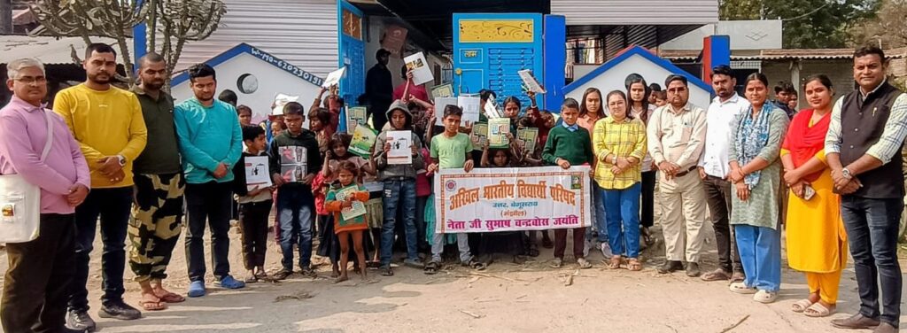 बेगूसराय (मंझौल) | अखिल भारतीय विद्यार्थी परिषद (ABVP) उत्तर बेगूसराय जिला केंद्र मंझौल नगर इकाई की ओर से शुक्रवार को नेताजी सुभाष चंद्र बोस की जयंती मनाई गई। जिला सहसंयोजक रवि कुमार एवं नगरमंत्री मुकेश कुमार के नेतृत्व में मंझौल खैरा टोला महादलित मोहल्ले में नेताजी सुभाष चंद्र बोस के चित्र पर पुष्पांजलि करते हुए छात्र-छात्राओं के बीच क्विज प्रतियोगिता के साथ पठन-पाठन सामग्री का वितरण किया गया।