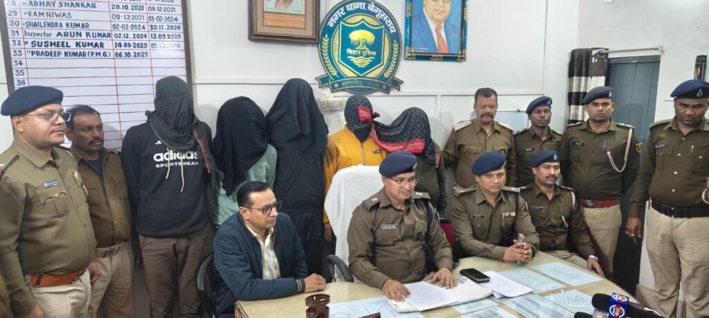 बेगूसराय। बेगूसराय पुलिस ने मुन्ना सिंह हत्याकांड के गवाह की हत्या की बड़ी साजिश का पर्दाफाश करते हुए 5 अपराधियों को धर दबोचा। यह कार्रवाई STF, जिला आसूचना इकाई और नगर थाना पुलिस ने संयुक्त रूप से की। गिरफ्तार अपराधियों के पास से आधुनिक हथियार, देशी कट्टा, भारी मात्रा में कारतूस, मोबाइल फोन और मोटरसाइकिल बरामद की गई है।