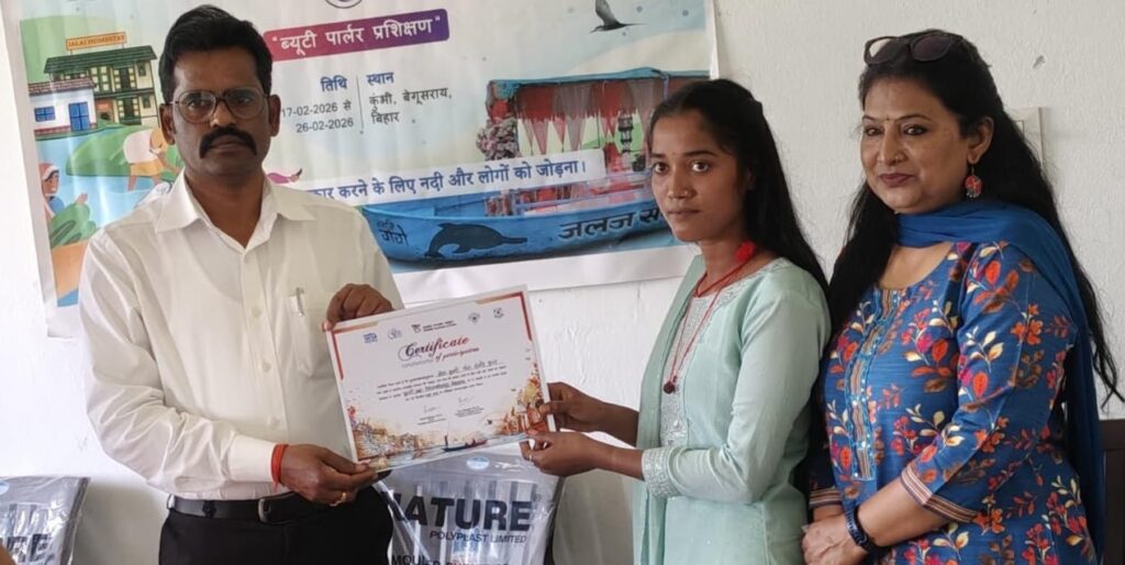 बेगूसराय | भारत सरकार के जलशक्ति मंत्रालय के अधीन भारतीय वन्यजीव संस्थान की ओर से संचालित दस दिवसीय प्राकृतिक सौंदर्य प्रशिक्षण कार्यक्रम का समापन बेगूसराय जिले के चेरिया बरियारपुर प्रखंड के प्रखंड विकास अधिकारी निरंजन कुमार के हाथों प्रशिक्षित महिलाओं के बीच प्रमाण पत्र वितरण के साथ संपन्न हुआ। ज्ञात हो कि भारतीय वन्यजीव संस्थान की ओर से गंगा नदी की सफाई और उसके आस पास रहने वाले लोगों को आत्मनिर्भर बनाने के उद्देश्य से उनके बीच विभिन्न सामग्रियों के निर्माण के लिए प्रशिक्षित किया जाता है। इसी कड़ी में कुंभी ग्राम के बिहार सरकार भवन परिसर में दस दिवसीय प्रकृति सौंदर्य प्रशिक्षण कार्यक्रम चलाया गया।